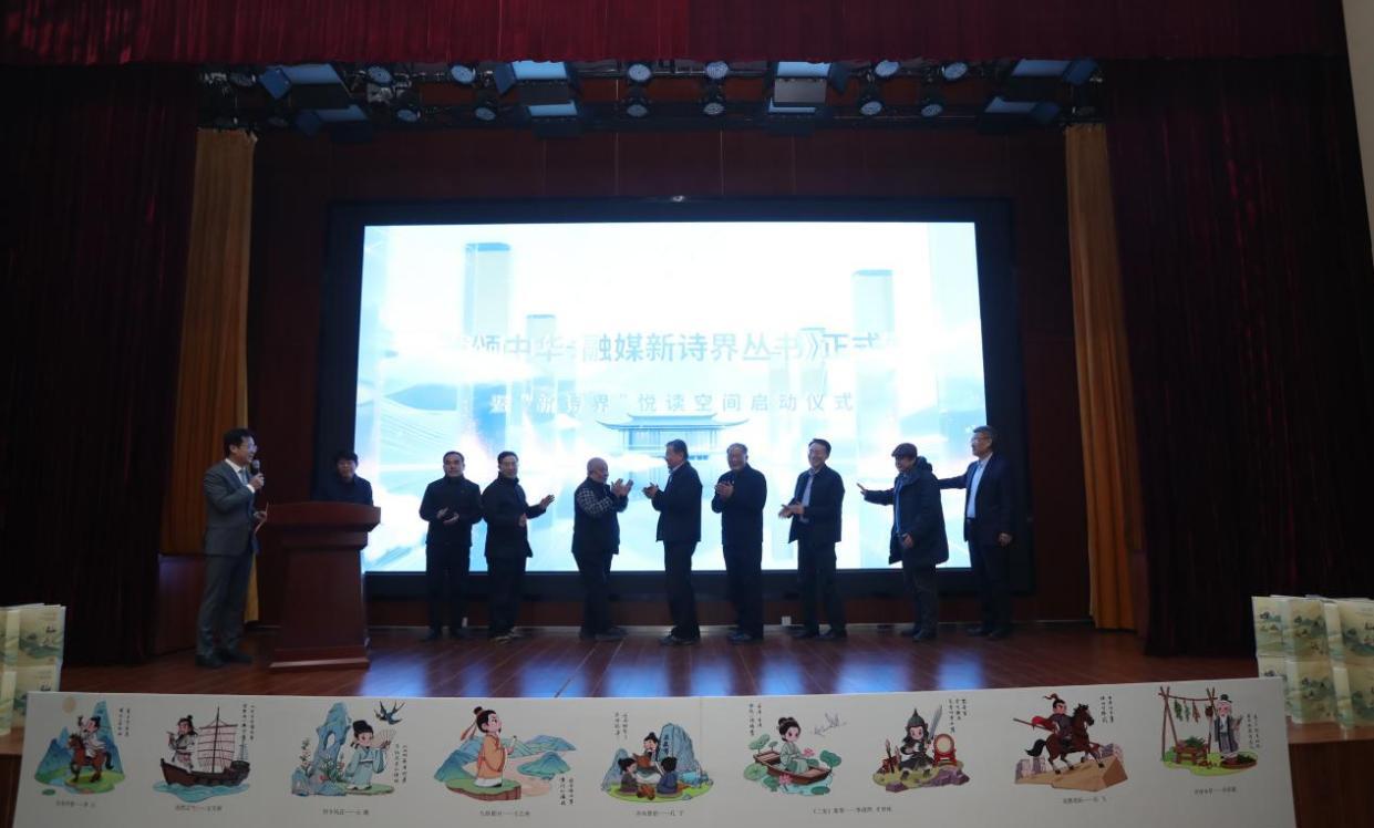 陈光华、刘欣堂、张志民、姜长勇、谢桂山、齐飞、刘桂法、杨枫、张新志共同登台,为《风雅颂中华:融媒新诗界丛书》正式发布启动仪式揭幕。与此同时,由山东省互联网传媒集团、山东教育出版社与山东省文化艺术教育研究会联合发起的“新诗界”悦读空间全民阅读项目也同步宣告启航。