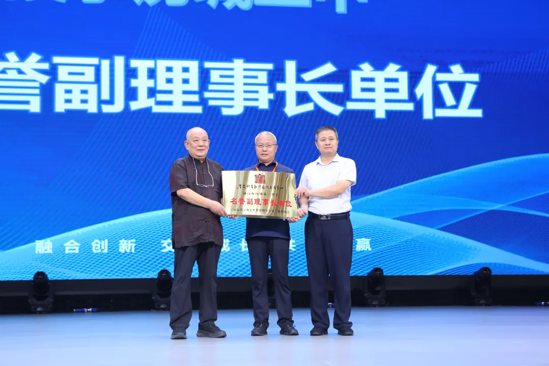 论坛中 张志民、郑吉刚向历城二中执行校长陈国强颁发“名誉副理事长单位”匾牌