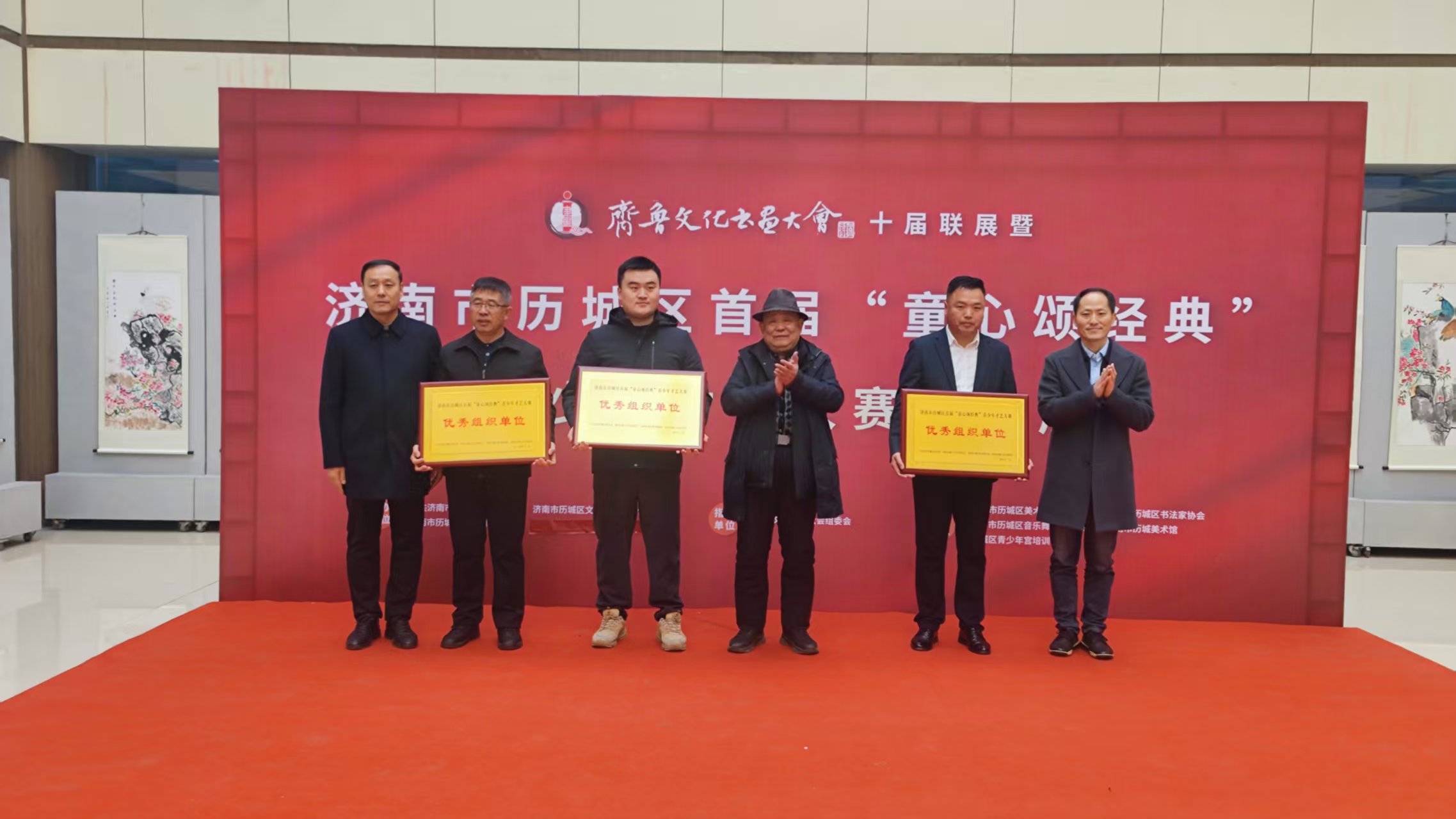 2025年1月12日上午,齐鲁文化书画大会十届联展暨历城区首届“童心颂经典”青少年才艺大赛作品展在历城美术馆开幕。