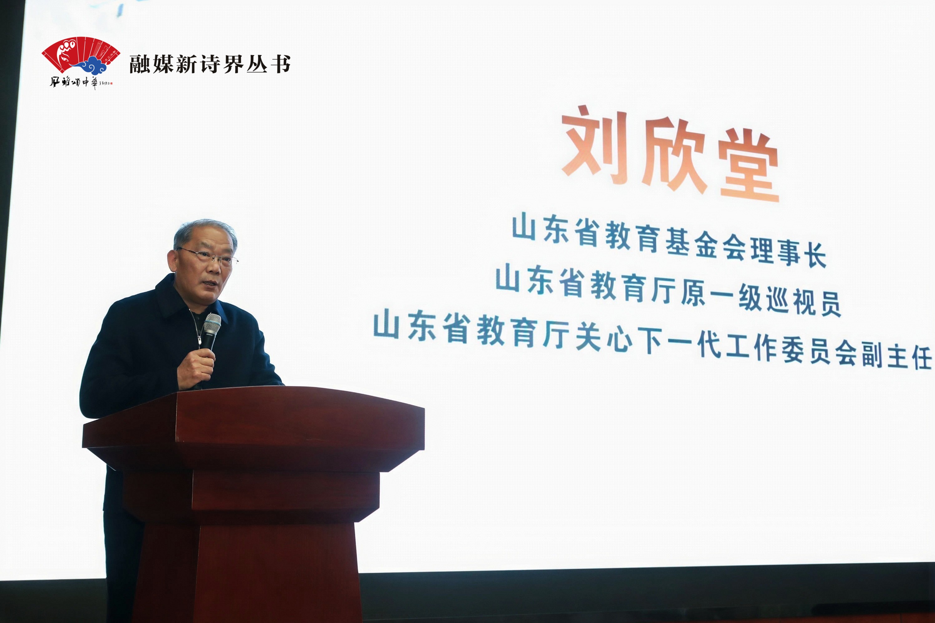 刘欣堂在致辞中首先向所有为《风雅颂中华:融媒新诗界丛书》编纂与出版付出辛勤努力的专家及同仁致以衷心感谢。他表示,山东省教育基金会始终恪守“弘扬中华民族优良传统,汇关爱,助杏坛,济贫困,树重教风尚,建和谐教育”的宗旨,致力于让每个孩子都能享有公平而有质量的教育,推动中华优秀传统文化在校园落地生根、薪火相传。这套历经六年积淀,融合“经典诗词+现代媒体+多元艺术形态”的丛书,是凝聚着智慧与坚守的珍贵文化馈赠,将中华优秀传统文化精准送达教育资源薄弱地区,助力当地开展校园美育实践与文化传承活动,让优质文化资源惠及更多师生。