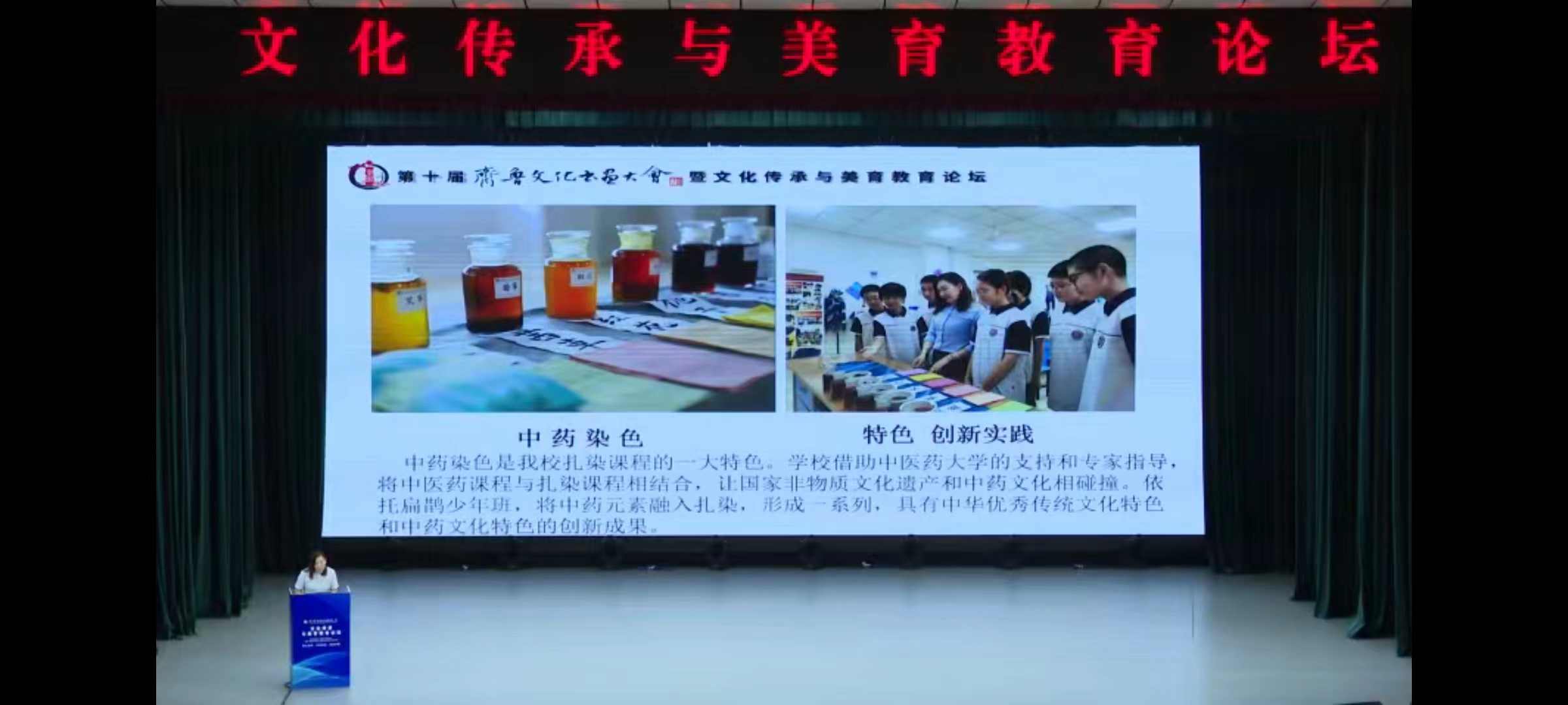 学校借助中医药大学的支持和专家指导,将中医课程与扎染课程相结合,让国家非物质文化遗产和中药文化相碰撞。形成一系列,具有中华优秀传统文化特色和中药文化特色的创新成果。