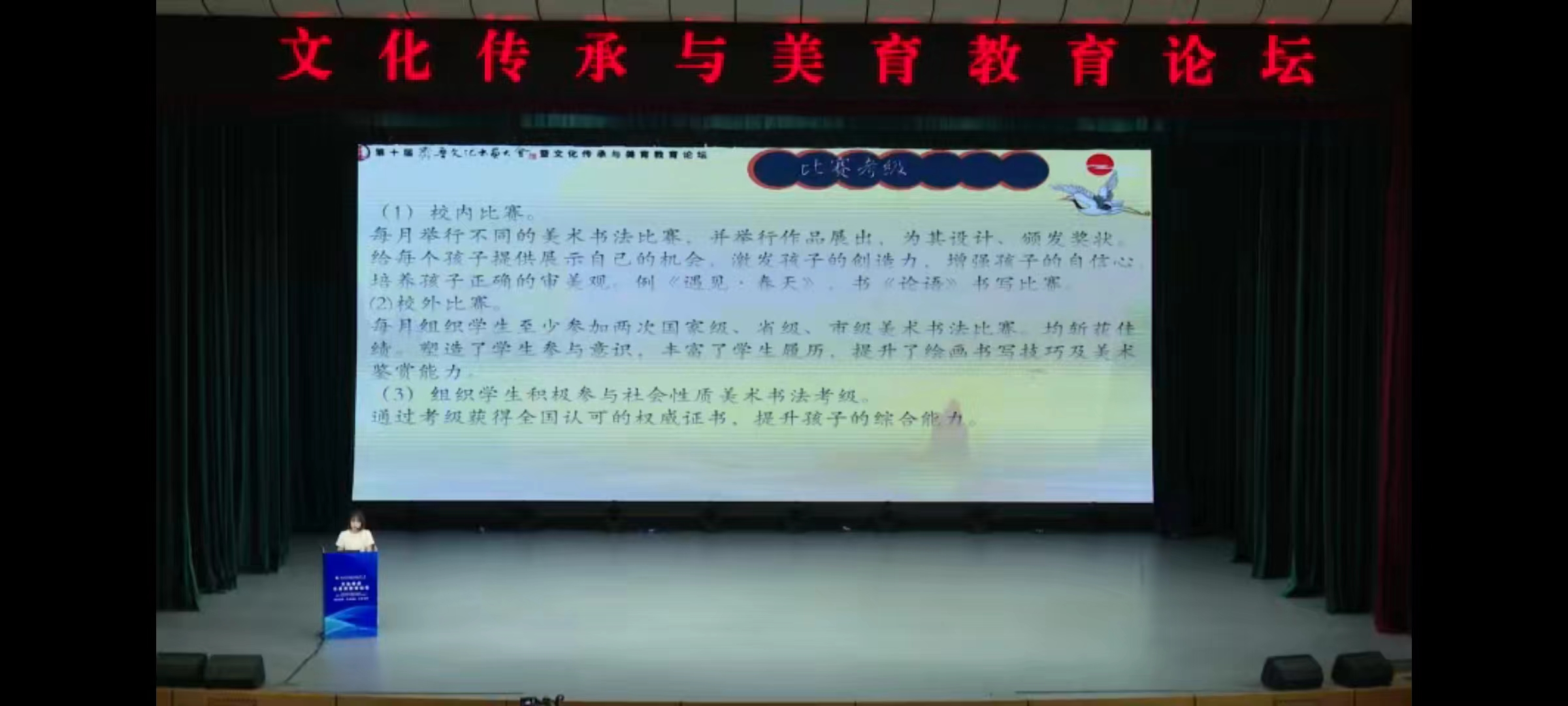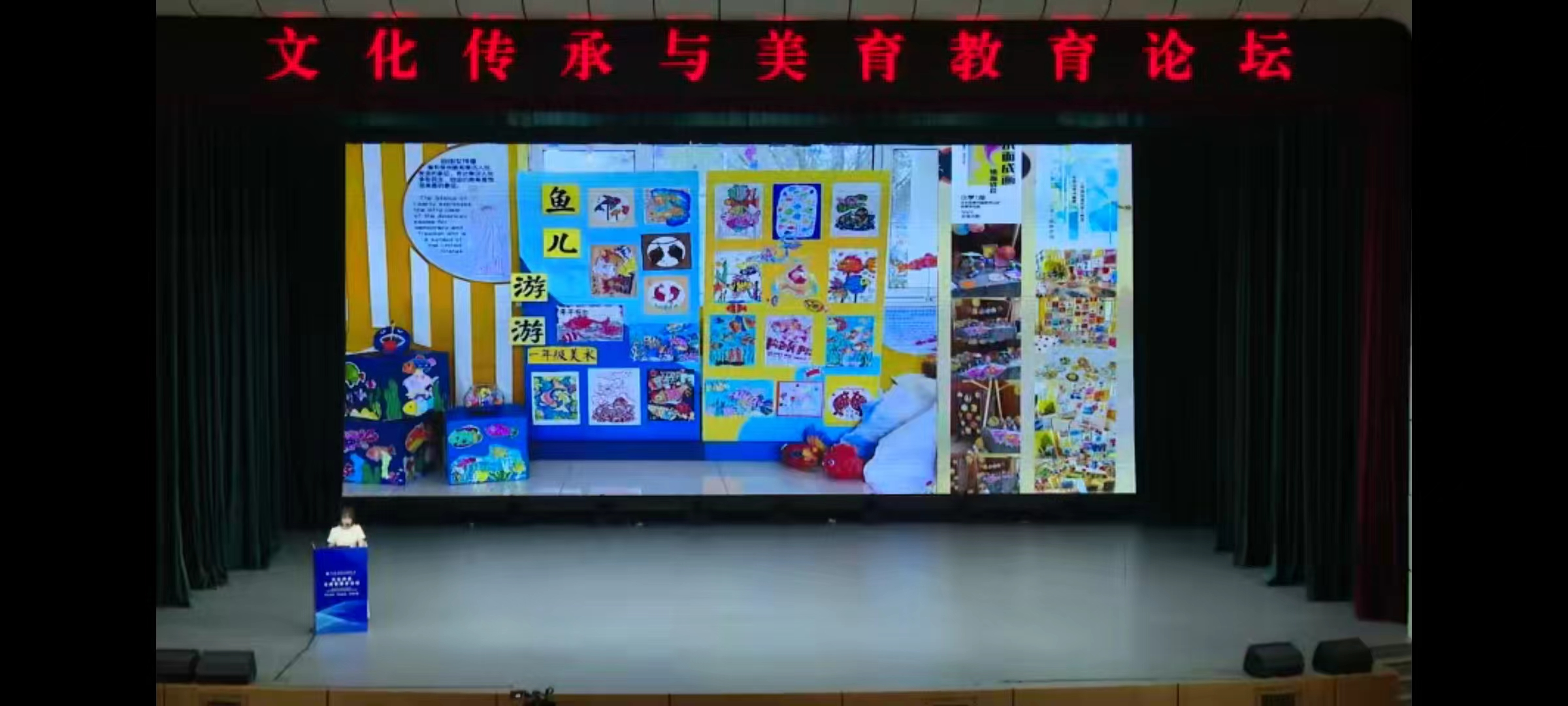 此外,王老师还从成果汇报画展、校园文化美育、比赛考级三个方面展示了学校的美育教学成果。